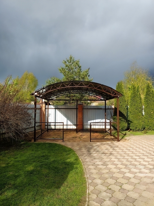 Арочный навес из поликарбоната для зоны отдыха на дачном участке Арт-679